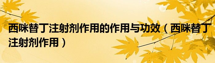 大家好,乐天来为大家解答以下的问题,西咪替丁注射剂作用的作用与功效,西咪替丁注射剂作用很多人还不知道,现在让我们一起来看看吧!