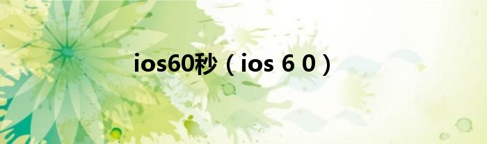 大家好,来宝来为大家解答以下问题,ios60秒,ios 6 0很多人还不知道,今天让我们一起来看看吧!