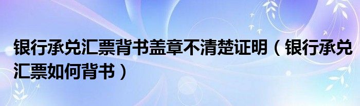 大家好,小联来为大家解答以上的问题。银行承兑汇票背书盖章不清楚证明,银行承兑汇票如何背书这个很多人还不知道,现在让我们一起来看看吧!