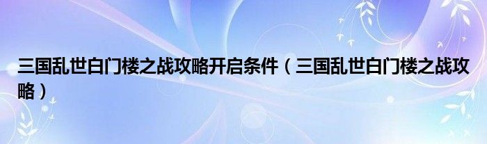 大家好,小联来为大家解答以上的问题。三国乱世白门楼之战攻略开启条件,三国乱世白门楼之战攻略这个很多人还不知道,现在让我们一起来看看吧!