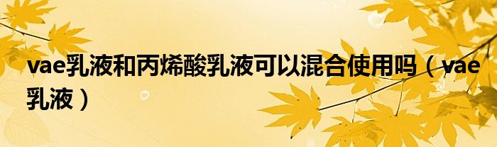 大家好,我是小科,我来为大家解答以上问题。vae乳液和丙烯酸乳液可以混合使用吗,vae乳液很多人还不知道,现在让我们一起来看看吧!