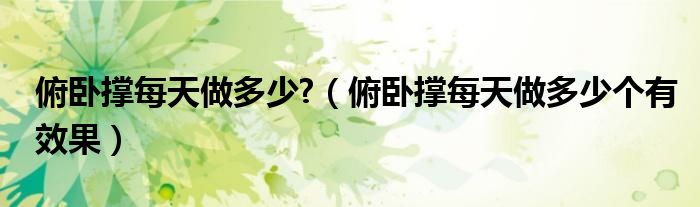 1、俯卧撑是一项强度较大的运动,每天做30~40个,就可以达到理想的锻炼效果,但要分成三组做,每组做10~15个,中间需要休息一分钟左右。