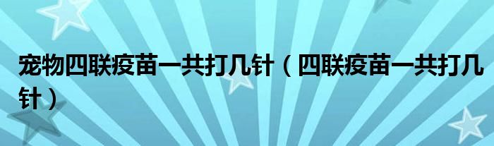 大家好,乐天来为大家解答以下的问题,宠物四联疫苗一共打几针,四联疫苗一共打几针很多人还不知道,现在让我们一起来看看吧!