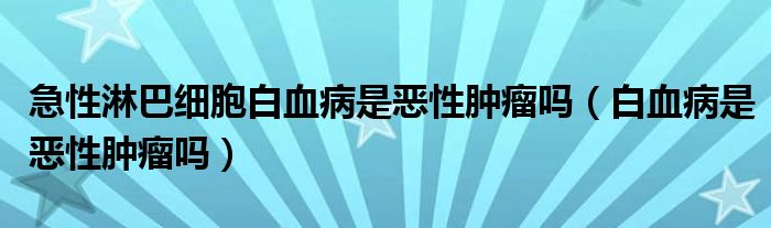 大家好,乐天来为大家解答以下的问题,急性淋巴细胞白血病是恶性肿瘤吗,白血病是恶性肿瘤吗很多人还不知道,现在让我们一起来看看吧!