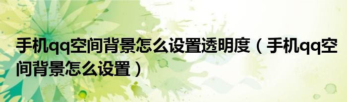 大家好,小晋来为大家解答以下问题,关于手机qq空间背景怎么设置透明度,手机qq空间背景怎么设置很多人还不知道,今天让我们一起来看看吧!