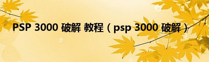 大家好,来宝来为大家解答以下问题,PSP 3000 破解 教程,psp 3000 破解很多人还不知道,今天让我们一起来看看吧!