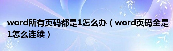 大家好,小晋来为大家解答以下问题,关于word所有页码都是1怎么办,word页码全是1怎么连续很多人还不知道,今天让我们一起来看看吧!