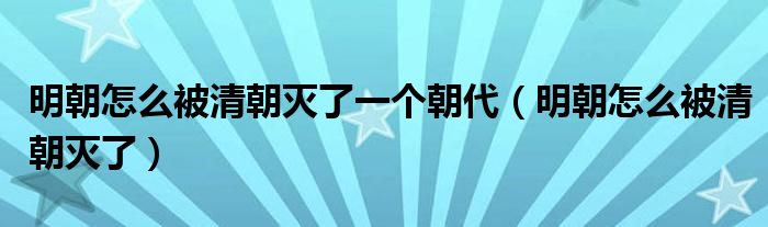 大家好,小晋来为大家解答以下问题,关于明朝怎么被清朝灭了一个朝代,明朝怎么被清朝灭了很多人还不知道,今天让我们一起来看看吧!