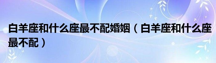 大家好,小晋来为大家解答以下问题,关于白羊座和什么座最不配婚姻,白羊座和什么座最不配很多人还不知道,今天让我们一起来看看吧!