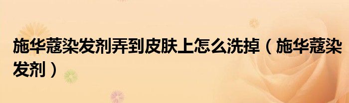 大家好,小晋来为大家解答以下问题,关于施华蔻染发剂弄到皮肤上怎么洗掉,施华蔻染发剂很多人还不知道,今天让我们一起来看看吧!