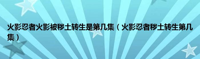 大家好,小晋来为大家解答以下问题,关于火影忍者火影被秽土转生是第几集,火影忍者秽土转生第几集很多人还不知道,今天让我们一起来看看吧!
