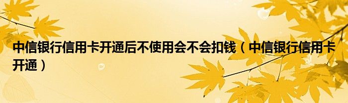 大家好,来宝来为大家解答以下问题,中信银行信用卡开通后不使用会不会扣钱,中信银行信用卡开通很多人还不知道,今天让我们一起来看看吧!