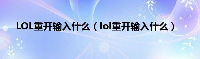 大家好,小晋来为大家解答以下问题,关于LOL重开输入什么,lol重开输入什么很多人还不知道,今天让我们一起来看看吧!