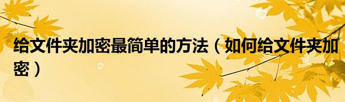 关于给文件夹加密最简单的方法,如何给文件夹加密这个很多人还不知道,今天菲菲来为大家解答以上的问题,现在让我们一起来看看吧!
