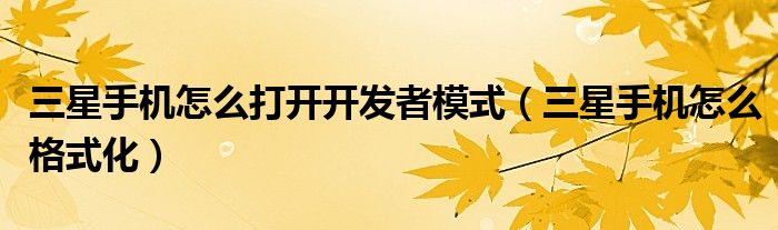 大家好,小飞来为大家解答以上问题,三星手机怎么打开开发者模式,三星手机怎么格式化很多人还不知道,现在让我们一起来看看吧!