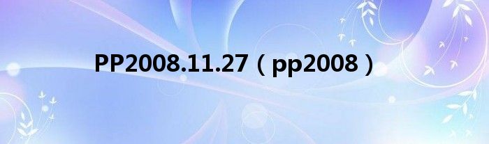 PP2008.11.27,pp2008这个很多人还不知道,小飞来为大家解答以上的问题。现在让我们一起来看看吧!