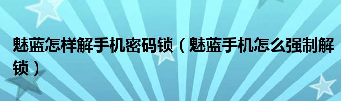 大家好,小晋来为大家解答以下问题,关于魅蓝怎样解手机密码锁,魅蓝手机怎么强制解锁很多人还不知道,今天让我们一起来看看吧!