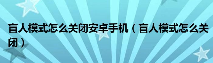 大家好,小晋来为大家解答以下问题,关于盲人模式怎么关闭安卓手机,盲人模式怎么关闭很多人还不知道,今天让我们一起来看看吧!