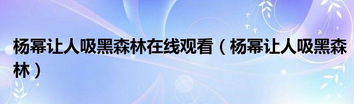 关于杨幂让人吸黑森林在线观看,杨幂让人吸黑森林这个很多人还不知道,今天菲菲来为大家解答以上的问题,现在让我们一起来看看吧!