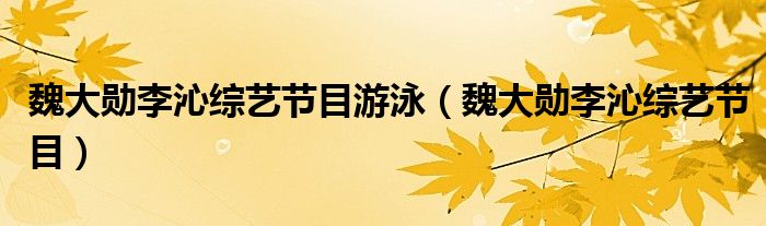关于魏大勋李沁综艺节目游泳,魏大勋李沁综艺节目这个很多人还不知道,今天菲菲来为大家解答以上的问题,现在让我们一起来看看吧!