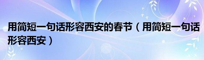 大家好,小晋来为大家解答以下问题,关于用简短一句话形容西安的春节,用简短一句话形容西安很多人还不知道,今天让我们一起来看看吧!