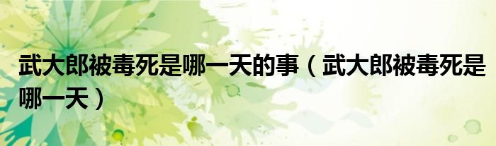 大家好,小晋来为大家解答以下问题,关于武大郎被毒死是哪一天的事,武大郎被毒死是哪一天很多人还不知道,今天让我们一起来看看吧!