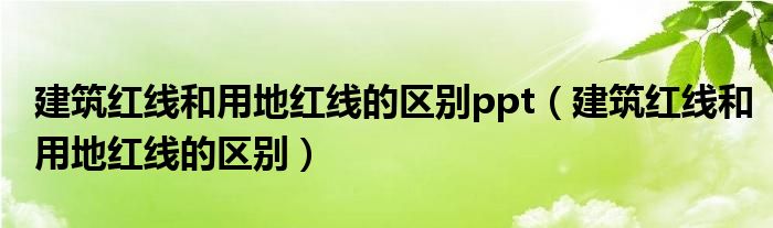 关于建筑红线和用地红线的区别ppt,建筑红线和用地红线的区别这个很多人还不知道,今天菲菲来为大家解答以上的问题,现在让我们一起来看看吧!