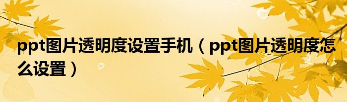 关于ppt图片透明度设置手机,ppt图片透明度怎么设置这个很多人还不知道,今天菲菲来为大家解答以上的问题,现在让我们一起来看看吧!