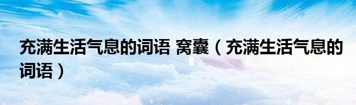 大家好,小晋来为大家解答以下问题,关于充满生活气息的词语 窝囊,充满生活气息的词语很多人还不知道,今天让我们一起来看看吧!