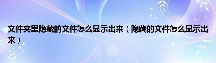以上是隐藏文件显示方式的方法。文件隐藏一般分为两种,一种是自己设置的文件隐藏。一些保密性好的企业为了保护自己,会把自己的电脑文件藏起来。这是一种人为的隐藏文件的方法。您可以选择直接在工具中显示文件。还有一个就是系统自动隐藏病毒导致的文件。这种系统需要先消毒。如果不消毒,会显示文件,容易破坏文件。