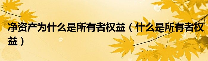 关于净资产为什么是所有者权益,什么是所有者权益这个很多人还不知道,今天菲菲来为大家解答以上的问题,现在让我们一起来看看吧!