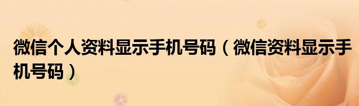 大家好,小晋来为大家解答以下问题,关于微信个人资料显示手机号码,微信资料显示手机号码很多人还不知道,今天让我们一起来看看吧!