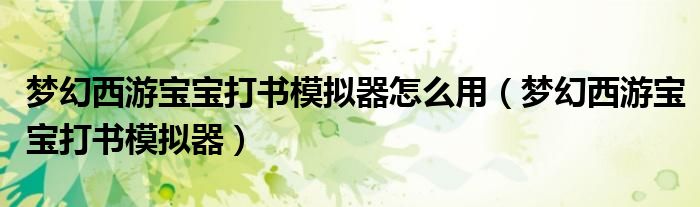 关于梦幻西游宝宝打书模拟器怎么用,梦幻西游宝宝打书模拟器这个很多人还不知道,今天菲菲来为大家解答以上的问题,现在让我们一起来看看吧!