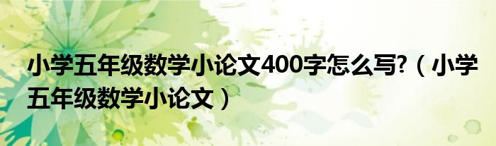 关于小学五年级数学小论文400字怎么写?,小学五年级数学小论文这个很多人还不知道,今天菲菲来为大家解答以上的问题,现在让我们一起来看看吧!