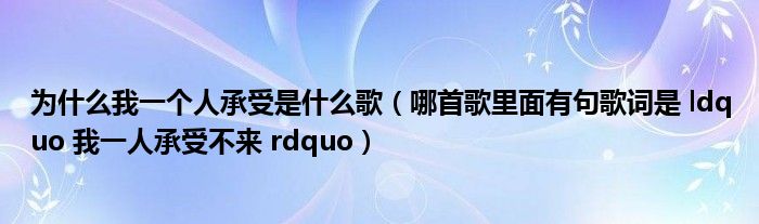 关于为什么我一个人承受是什么歌,哪首歌里面有句歌词是 ldquo 我一人承受不来 rdquo这个很多人还不知道,今天菲菲来为大家解答以上的问题,现在让我们一起来看看吧!