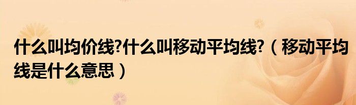 关于什么叫均价线?什么叫移动平均线?,移动平均线是什么意思这个很多人还不知道,今天菲菲来为大家解答以上的问题,现在让我们一起来看看吧!