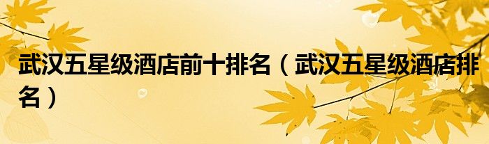 关于武汉五星级酒店前十排名,武汉五星级酒店排名这个很多人还不知道,今天菲菲来为大家解答以上的问题,现在让我们一起来看看吧!