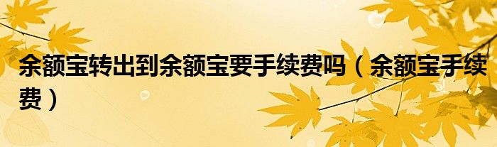 大家好,来宝来为大家解答以下问题,余额宝转出到余额宝要手续费吗,余额宝手续费很多人还不知道,今天让我们一起来看看吧!