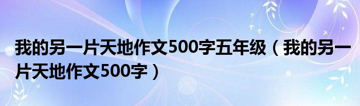 关于我的另一片天地作文500字五年级,我的另一片天地作文500字这个很多人还不知道,今天菲菲来为大家解答以上的问题,现在让我们一起来看看吧!