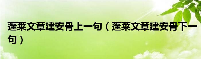 关于蓬莱文章建安骨上一句,蓬莱文章建安骨下一句这个很多人还不知道,今天菲菲来为大家解答以上的问题,现在让我们一起来看看吧!