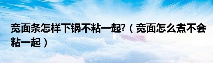 关于宽面条怎样下锅不粘一起?,宽面怎么煮不会粘一起这个很多人还不知道,今天菲菲来为大家解答以上的问题,现在让我们一起来看看吧!