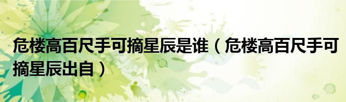 关于危楼高百尺手可摘星辰是谁,危楼高百尺手可摘星辰出自这个很多人还不知道,今天菲菲来为大家解答以上的问题,现在让我们一起来看看吧!