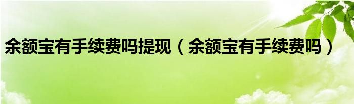 大家好,来宝来为大家解答以下问题,余额宝有手续费吗提现,余额宝有手续费吗很多人还不知道,今天让我们一起来看看吧!