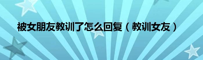 关于被女朋友教训了怎么回复,教训女友这个很多人还不知道,今天菲菲来为大家解答以上的问题,现在让我们一起来看看吧!