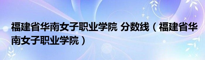 关于福建省华南女子职业学院 分数线,福建省华南女子职业学院这个很多人还不知道,今天菲菲来为大家解答以上的问题,现在让我们一起来看看吧!